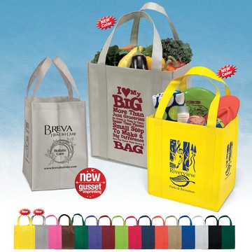 A smaller version of our Big Thunder tote. Also made from super strong 100 GSM premium non-woven polypropylene. Features dual reinforced 20" handles and a hard plastic bottom insert for added strength and stability.